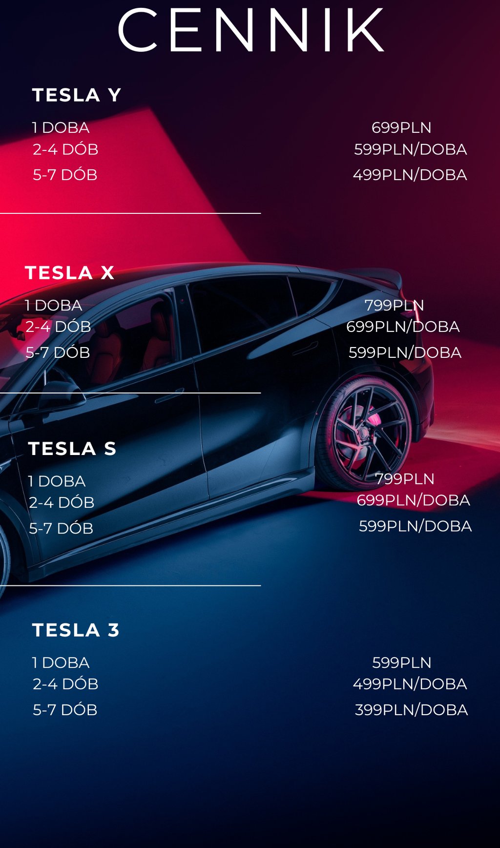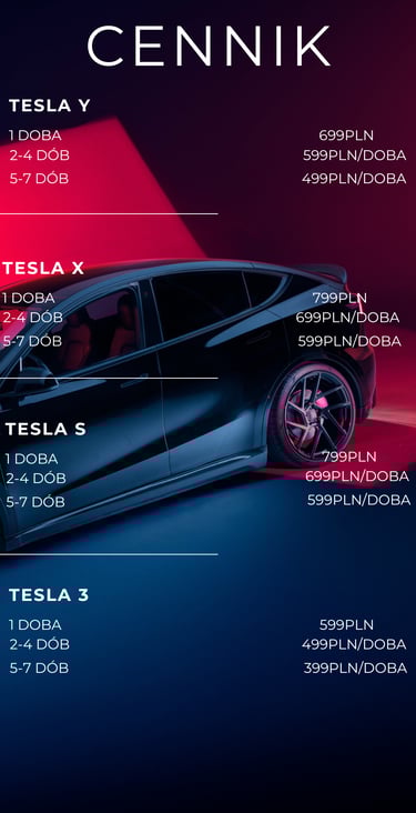 Wypożyczalnia aut luksusowych Tesla, gdzie nowoczesność spotyka komfort i styl.